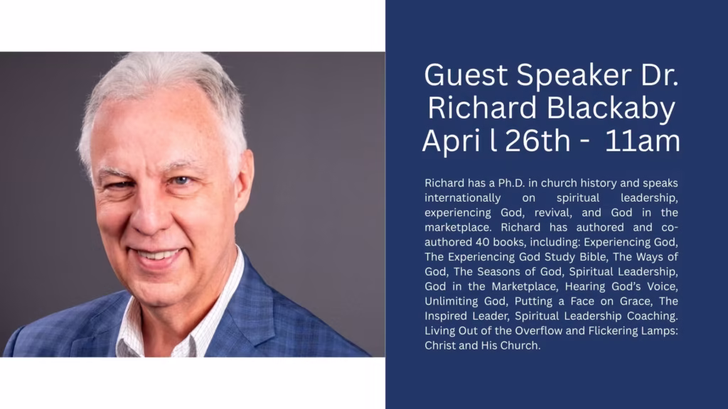 Guest Speaker Dr. Richard Blackaby April 26th at 11 AM Guest Speaker: Dr. Richard Blackaby Join us on April 26th at 11 AM with guest speaker, Dr. Richard Blackaby.